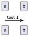 | 1 | {{\na->b:test 1\n}} | ""a->b:test 1"" | <img:http://www.plantuml.com/plantuml/png/IzIrIx8gIIqkKJ040000> |