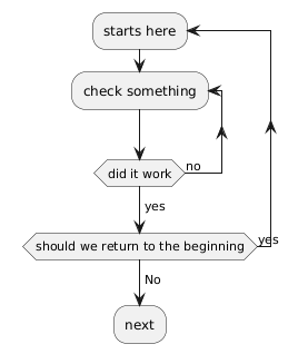 In my contrived example I want to go from "should we return to the beginning?" and it should go to the already existing "Starts here" rather than creating a new one.