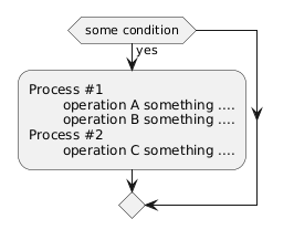 if ( some condition ) then (yes) :Process #1 operation A something .... operation B something .... Process #2 operation C something ....; endif