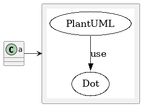 @startumlclass arectangle l [{{digraph foo { PlantUML -> Dot [label=use];}}}]a->l@enduml
