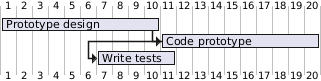Gantt charts are displaying tasks in a calendar. Starting from this assumption, dependency between tasks are solved by plantUML so to show the tasks at their minimal starting points.
