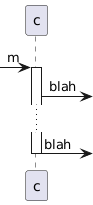 I have a sequence diagram where I want to indicate that several messages are sent during a synchronisation phase. Activate and delay look like proper candidates to do this. Here's the properly rendered diagram without delay: