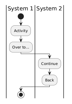 Is it possible to break the strict top-bottom flow order in "activity (beta)" diagrams? I mean, besides doing splits or looping. I'm thinking it might be nice to "restart" further up sometimes in order to get a more compact diagram. I'd typically want this when the flow moves to a different swimlane, which might for instance mean placing "Continue" directly to the right of "Activity" in the below diagram. Is there a way to achieve this? If not, consider this as a feature request...