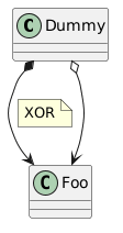 Dummy could have one Composition with Foo or or one Agregation with Foo but not both at the same time