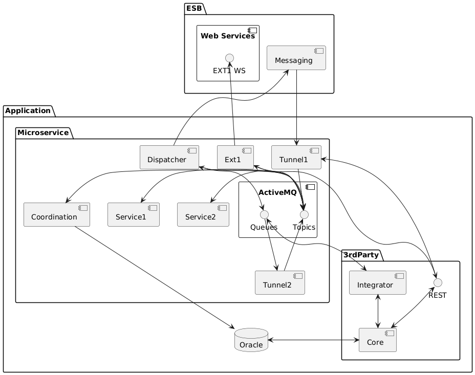 2) inside the microservice layer, I would like to have components Coordination, service1 and service2 be placed one under another, right to the ActiveMQ box, and have simple horisontal arrows linking them to Topics endpoint